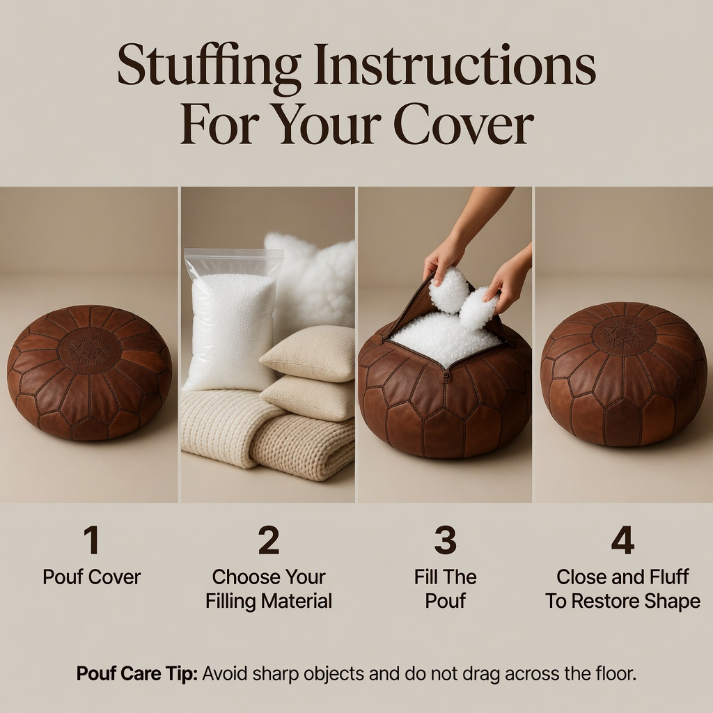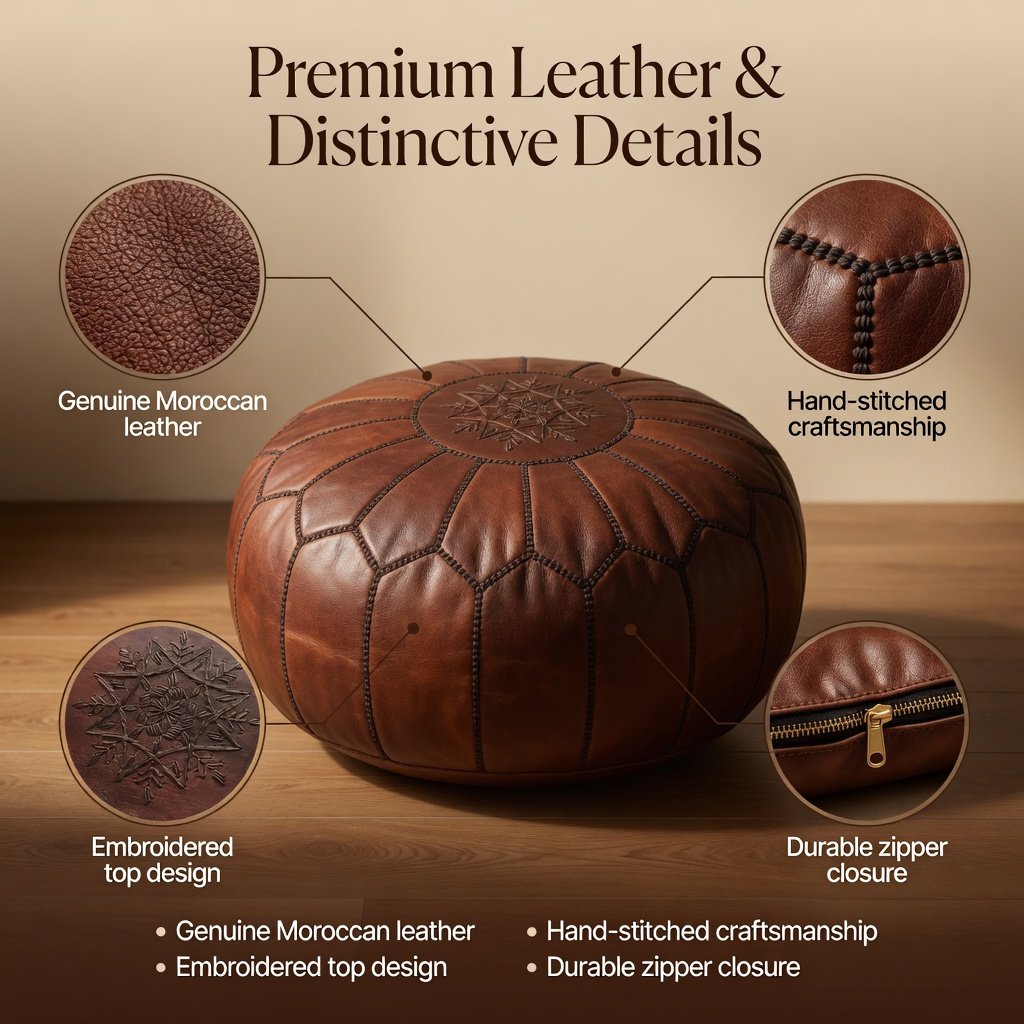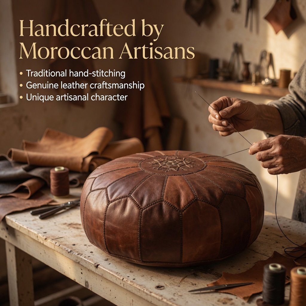 Bring authentic Moroccan heritage into your home with a leather pouf that is both functional and beautifully handcrafted.