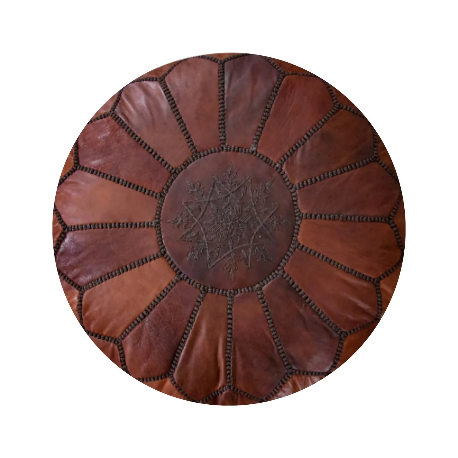 handmade moroccan genuine leather pouf ottoman cover – unstuffed foot stool ottoman, boho foot rest under desk, round ottoman for living room, bedroom housewarming gifts new home, weddings giftsDark Brown Leather Pouf Ottoman